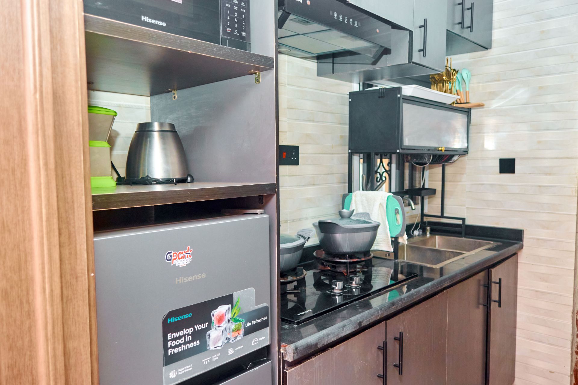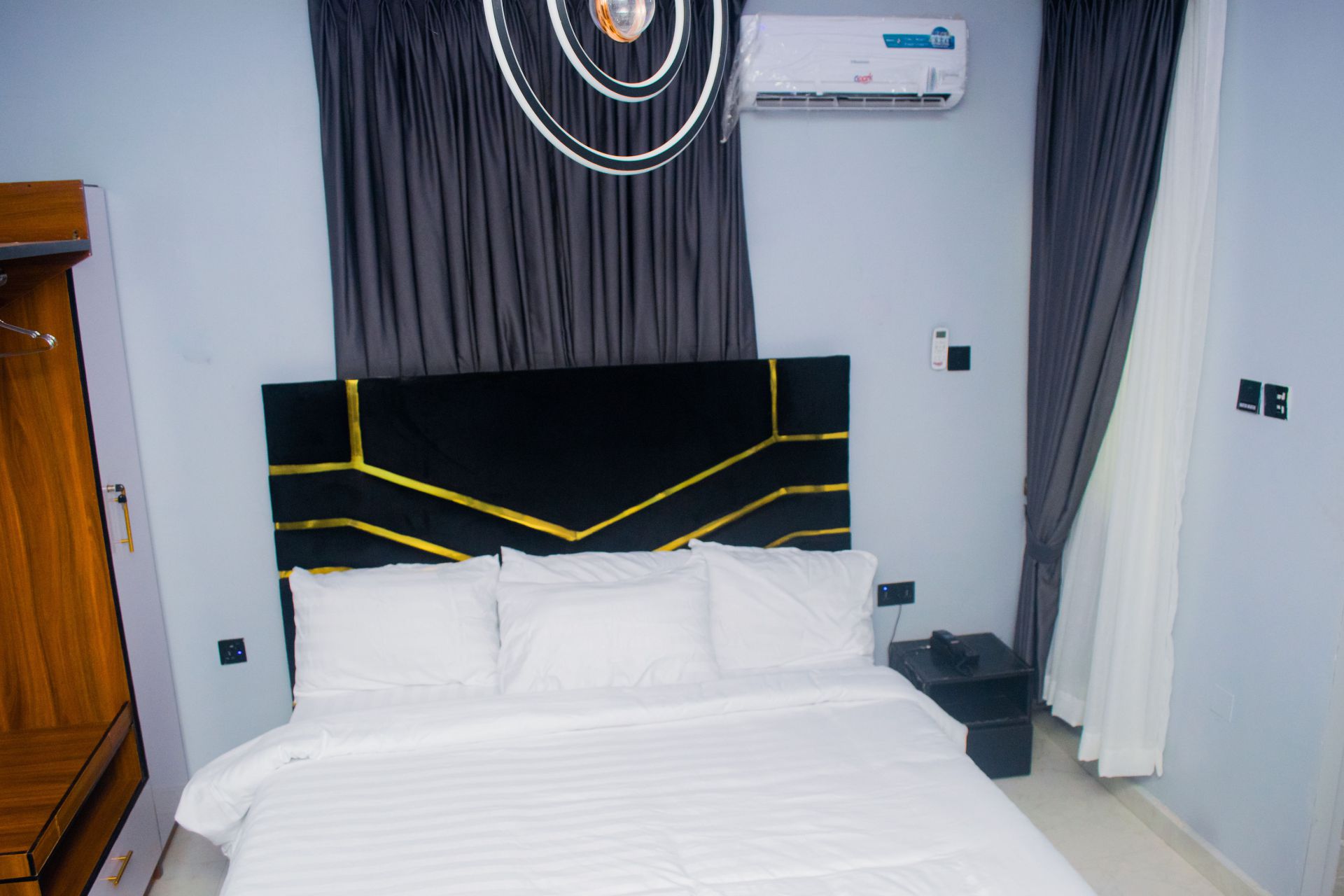 Discover comfort and elegance in our 1-Bedroom Luxury Apartment, designed for guests who appreciate style and privacy. This tastefully furnished space features a spacious master bedroom with soft robes and fine linens, smart TV, free Wi-Fi and full air-conditioning for your relaxation. Enjoy a fully equipped kitchen, built-in roof speakers and a soothing massager that make every stay unforgettable.