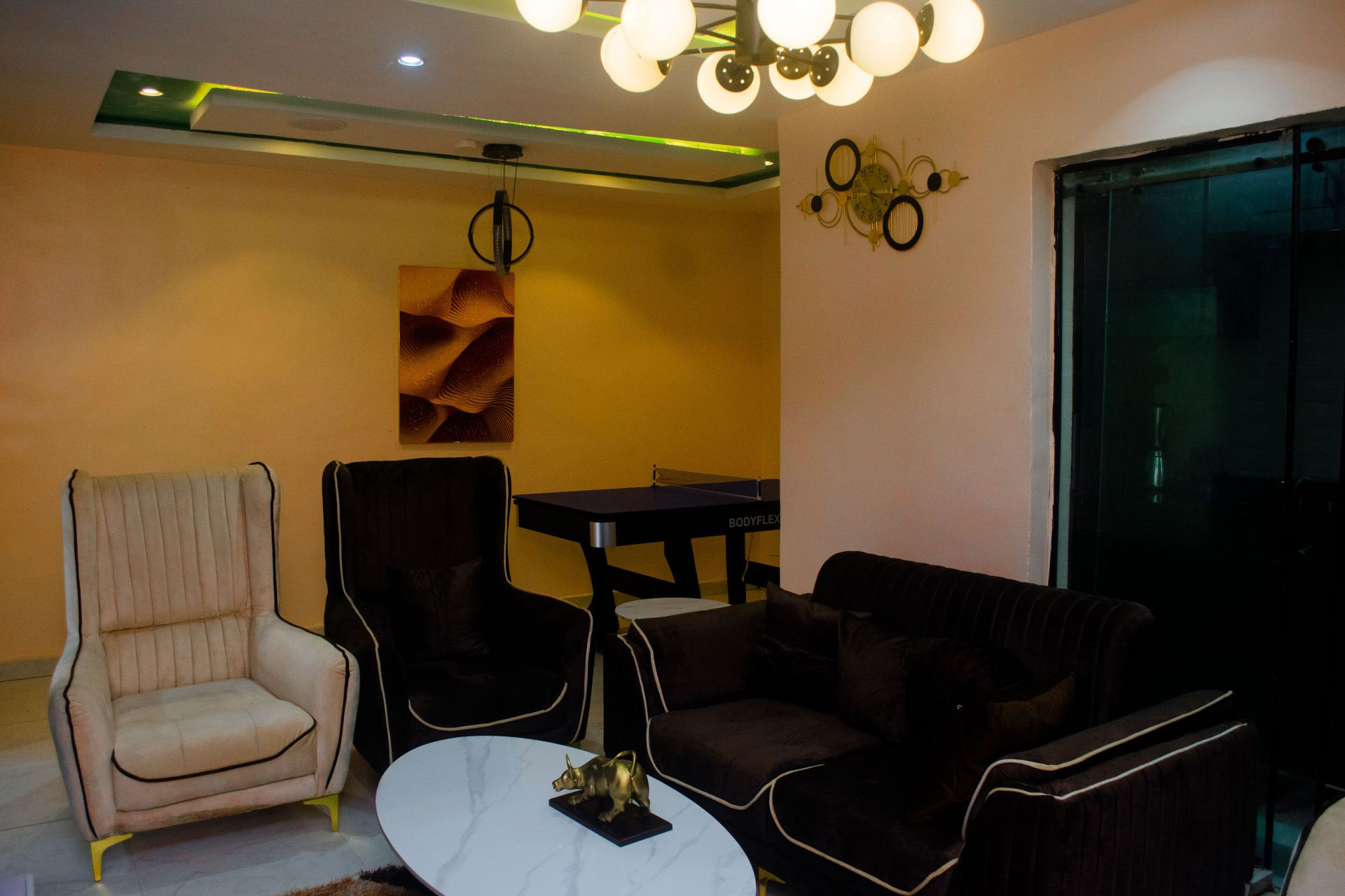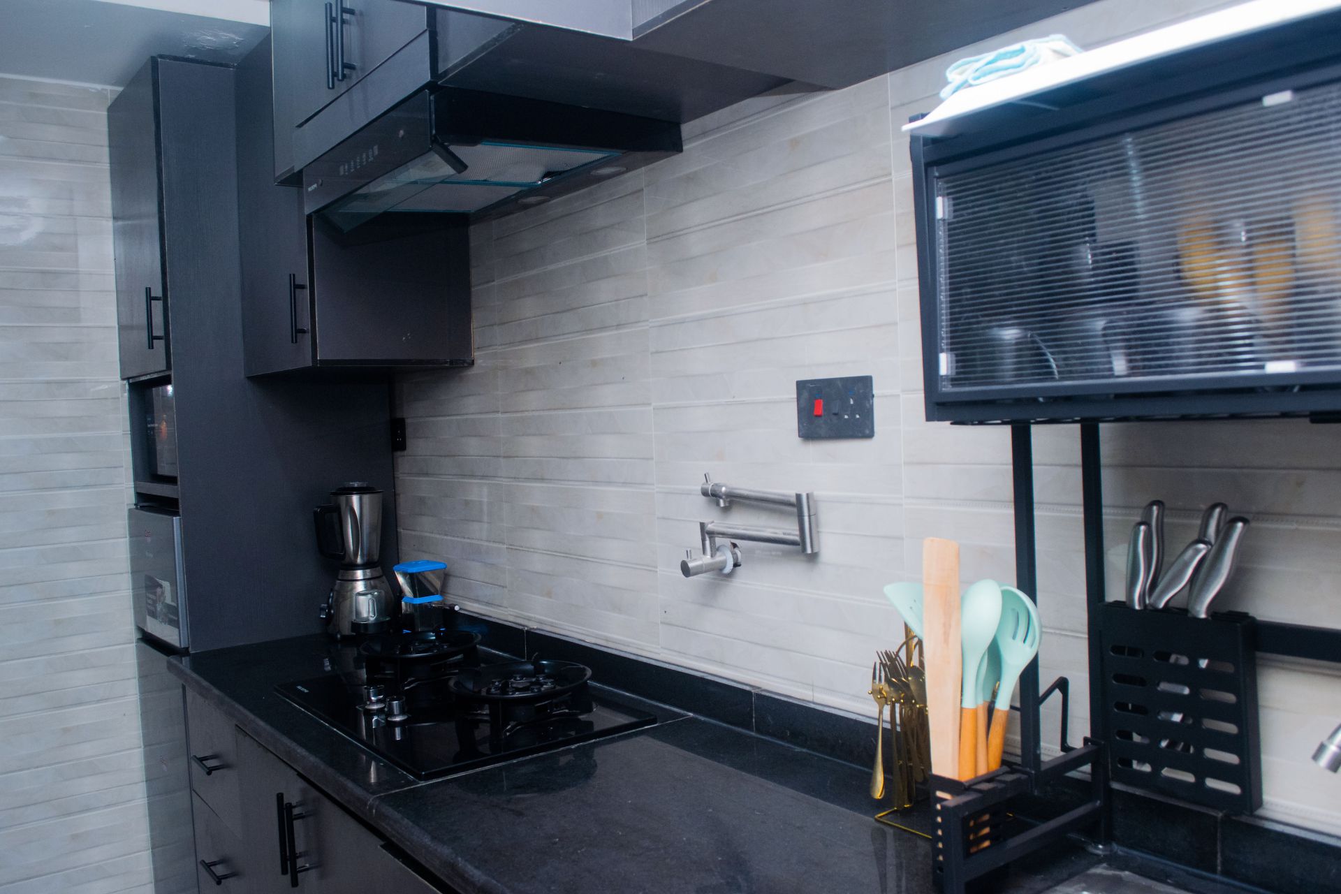 Discover comfort and elegance in our 1-Bedroom Luxury Apartment, designed for guests who appreciate style and privacy. This tastefully furnished space features a spacious master bedroom with soft robes and fine linens, smart TV, free Wi-Fi and full air-conditioning for your relaxation. Enjoy a fully equipped kitchen, built-in roof speakers and a soothing massager that make every stay unforgettable.